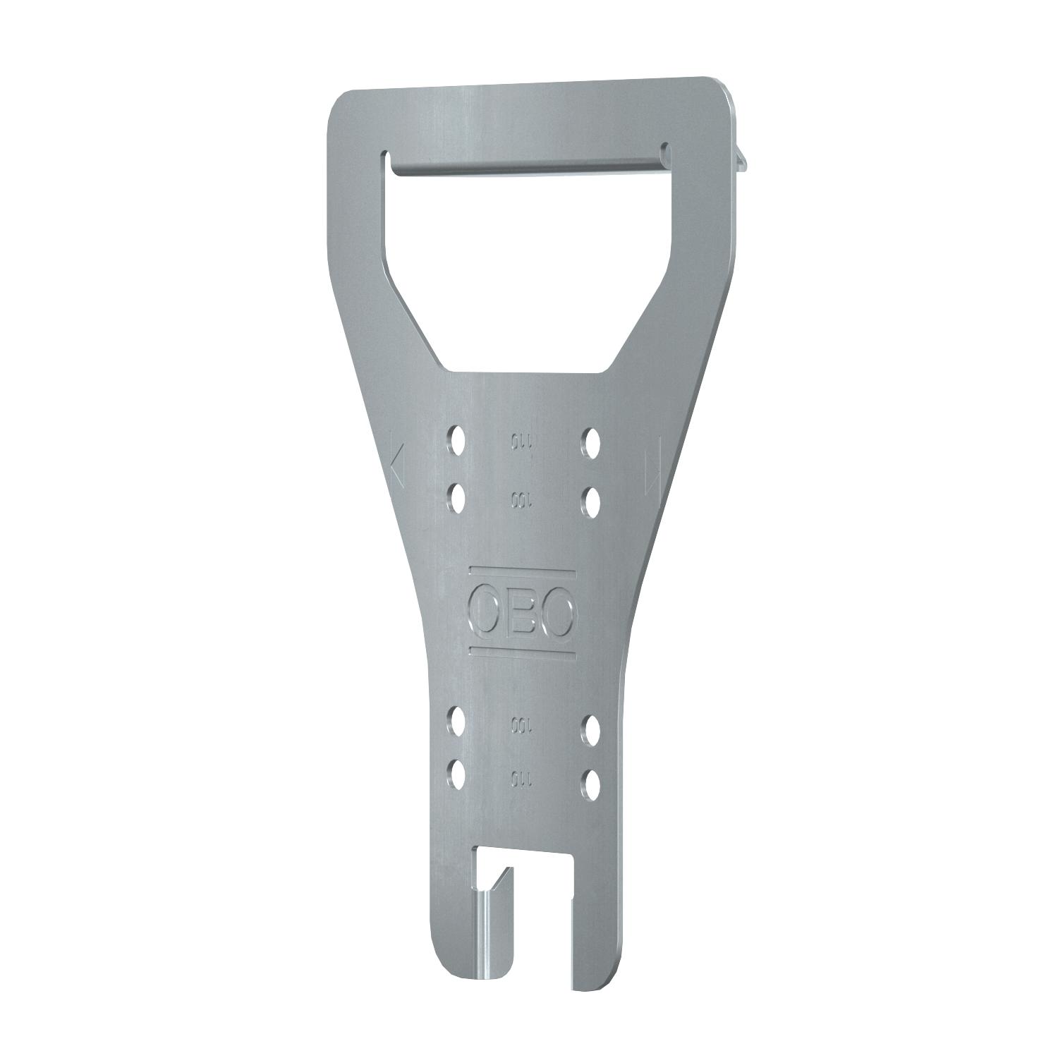 或者,盖板升降器也可以用作施工期间切割电缆桥架的连接件穿孔模板。 为此,将盖板升降器旋转180°并放置在电缆桥架上。 然后使用适合侧面高度的穿孔模板。