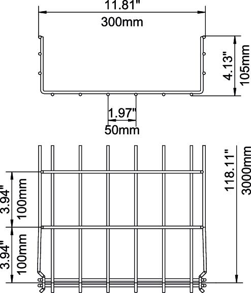 网栅线缆槽不需要任何额外的连接零件,只需相互卡接在一起即可。 网孔尺寸为50 x 100 mm。