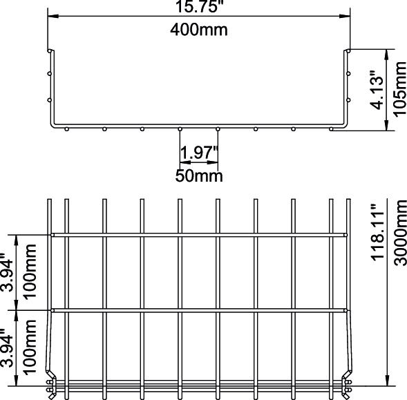 网栅线缆槽不需要任何额外的连接零件,只需相互卡接在一起即可。 网孔尺寸为50 x 100 mm。