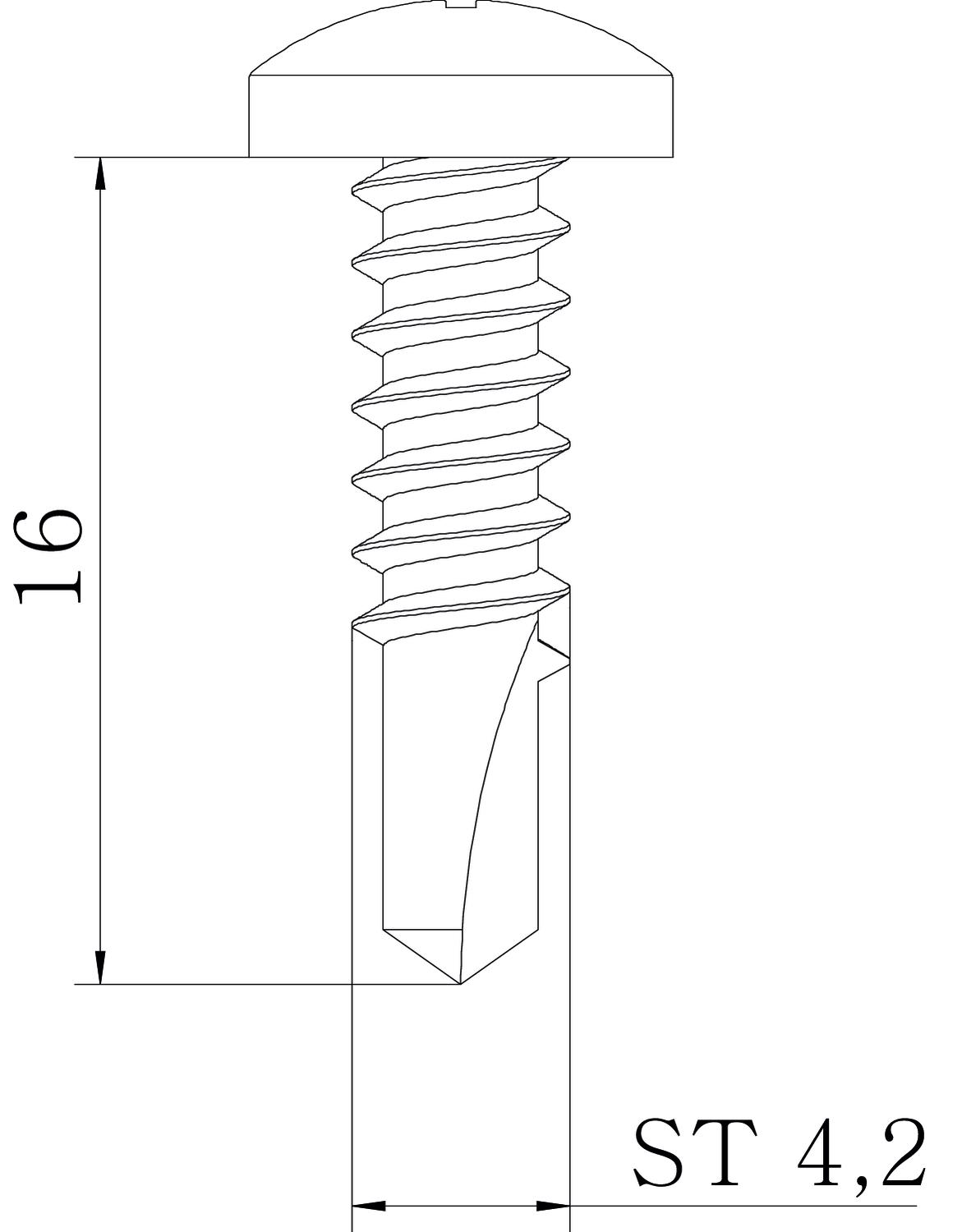 尺寸 M4,2x16 尺寸 4,2x16 尺寸 d 4,2 mm 尺寸 l 16 mm 材料 钢 螺纹直径ST 4,2 螺钉系统 十字头 表面 电镀锌 钉头形状 平面球 长度 16 mm 颜色 锌 - 所有型号