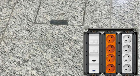 地插出口小单元大容量,不仅可以根据防水、承重等不同的要求,选择相应等级的产品,还有多种形状和颜色的选择,用于匹配不同的外部装饰风格,而地插出口的内部则可根据使用 需求,安装各类主流的强弱电设备插口,且安装盒高度可调,从而保持与地面的平整一致。