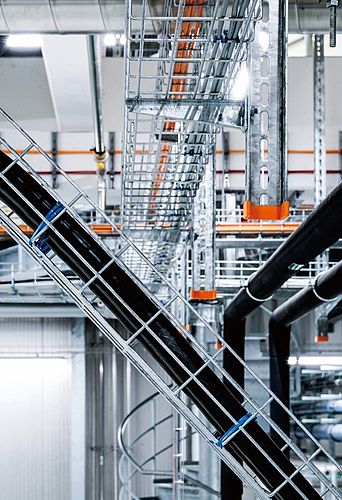 OBO大跨距桥架系统安装配件支持混 凝土安装紧固和钢架结构安装紧固。 拥有许多海外多个大型项目的使用运 营经验,大跨距桥架系统在钢结构建 筑中越来越流行以及被客户所认可。 其大负载能力和大跨度相结合,可以 提供高效和优化的电缆布设方案。