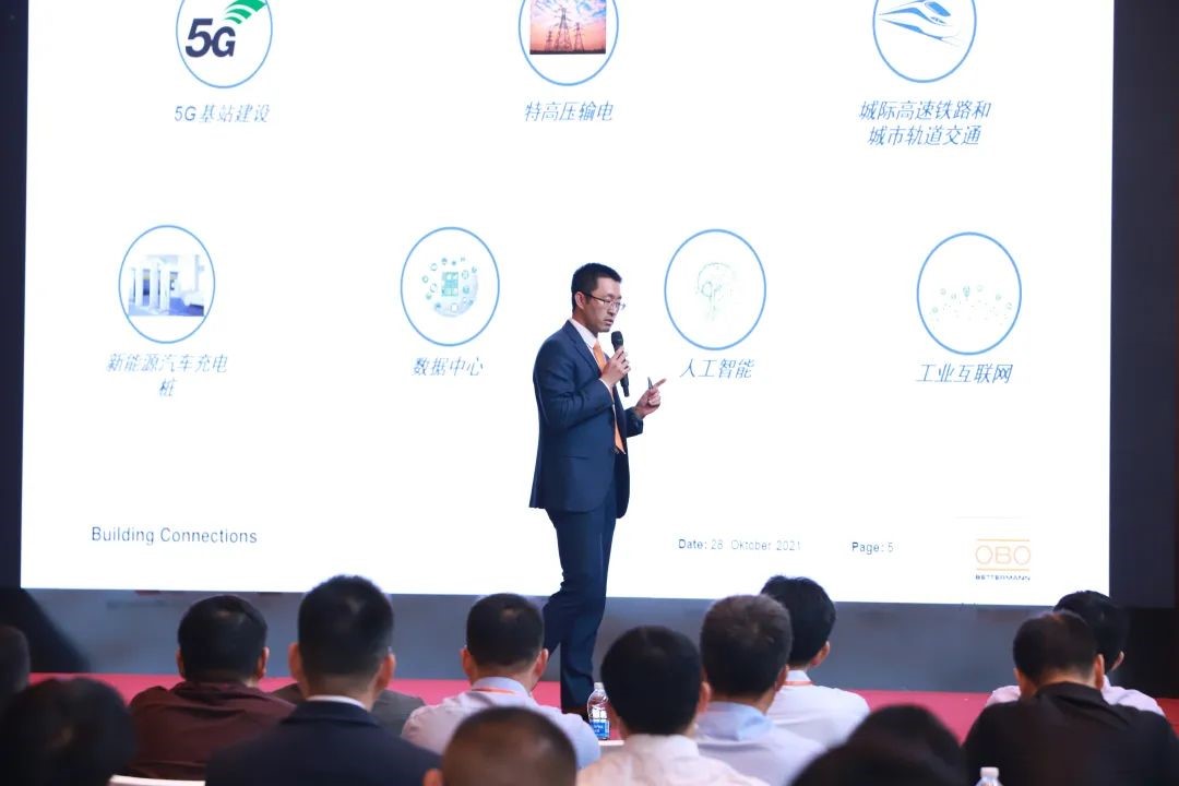 OBO集团总部首席销售官--Mr. Michael Büenfeld以及集团国际业务全球销售负责人Mr. Frederico Ferreira,因疫情原因无法出席会议,为了让大家更好的了解OBO集团未来的计划,会议现场特别视频连线了德国总部,两人肯定了中国市场在OBO集团全球发展的重要战略地位,并表示OBO集团总部会加大对中国市场的投资与支持。