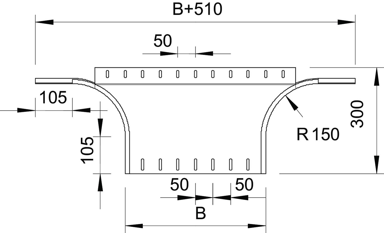 Bend (angle) 90° Change of direction Horizontal Connector version Without connectors Dimension 110x500 Dimension B 500 mm Dimension R 150 mm Height 4 in Height 110 mm Maintain electrical functions no Material Steel Material thickness, floor plate 1,5 mm NATO hole pattern no Rail thickness 1,25 mm Rustproof steel, pickled no Surface Strip galvanized Type of connector, cable support system Screwed Wide-span version no Width 500 mm Width 20 in - All types