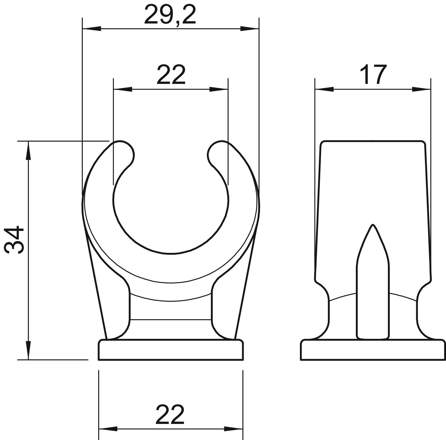 Clamping range D, max. 22 mm Clamping range D, min. 19 mm CO2 Footprint (GWP) Cradle-to-Gate 0,0216 kg CO2e / 1 Piece Colour Light grey; RAL 7035 Dimension 19-22mm Dimension A 29,2 mm Dimension B 17 mm Dimension C 22 mm Dimension H 34 mm Fastening type Threaded connection Halogen-free yes Material Polypropylene Nominal diameter 18,8 mm Number of cables/pipes 1 Plastic-covered no Size 19-22 Suitable in fire protection area no UV-resistant no Version for Single-lobe - All types