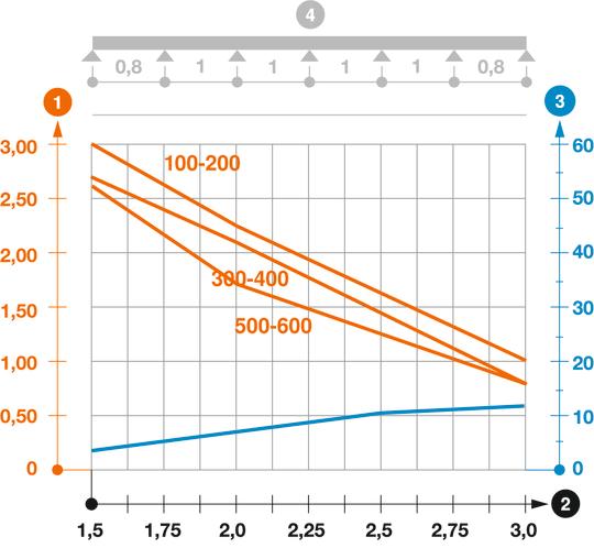 Load diagram, cable tray, type SKSM 60