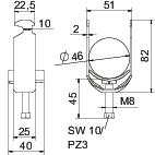 Clamping range D, max. 46 mm Clamping range D, min. 40 mm CO2 Footprint (GWP) Cradle-to-Gate 0,4449 kg CO2e / 1 Piece Dimension 40-46mm Dimension A 25 mm Dimension B 51 mm Dimension C 40 mm Dimension G (mm) M8 Dimension H 82 mm Dimension L 45 mm Dimension t 2 mm For pipe diameter, max. 46 mm For pipe diameter, min. 40 mm for rail with slot width (with interval), max. 17 mm for rail with slot width (with interval), min. 16 mm Halogen-free yes Height 82 mm Length 25 mm Length of external dimensions 40 mm Material Aluminium Material addition Aluminium Material of trough Plastic Material quality of trough Polypropylene Max. Tightening torque 2 Nm Mounting type Profile rail Number of cables/pipes 1 Plate thickness 2 mm Slot width 10 mm Surface addition Untreated Thread M8 Width 51 mm With counter-trough no With plastic trough yes - All types