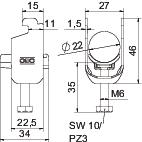 Clamping range D, max. 22 mm Clamping range D, min. 16 mm CO2 Footprint (GWP) Cradle-to-Gate 0,0857 kg CO2e / 1 Piece Dimension 16-22mm Dimension A 22,5 mm Dimension B 27 mm Dimension C 34 mm Dimension G (mm) M6 Dimension H 46 mm Dimension L 35 mm Dimension t 1,5 mm For pipe diameter, max. 22 mm For pipe diameter, min. 16 mm for rail with slot width (with interval), max. 12 mm for rail with slot width (with interval), min. 11 mm Halogen-free yes Height 46 mm Length 22,5 mm Length of external dimensions 34 mm Material Steel Material addition Steel Material of trough Plastic Material quality of trough Polypropylene Max. Tightening torque 3 Nm Mounting type Profile rail Number of cables/pipes 1 Plate thickness 1,5 mm Slot width 10 mm Surface Hot-dip galvanised Surface addition hot galvanised Thread M6 Width 27 mm With counter-trough no With plastic trough yes - All types