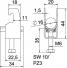 Product descriptionClamp clip with U-foot, plastic pressure sleeve made of polypropylene. For vertical and horizontal mounting of 1 single cable on a C-profile rail. For slot width 18–22 mm. With 1-start screw thread on pressure sleeve, universal hexagonal screw head WAF10, with slot and cross recess. Suitable for assembly indoors and outdoors. We recommend the use of a counter-sleeve.