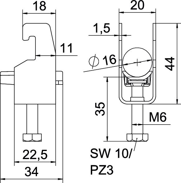 Clamping range D, max. 16 mm Clamping range D, min. 12 mm CO2 Footprint (GWP) Cradle-to-Gate 0,0823 kg CO2e / 1 Piece Dimension 12-16mm Dimension A 22,5 mm Dimension B 20 mm Dimension C 34 mm Dimension G (mm) M6 Dimension H 44 mm Dimension L 35 mm Dimension t 1,5 mm For pipe diameter, max. 16 mm For pipe diameter, min. 12 mm for rail with slot width (with interval), max. 22 mm for rail with slot width (with interval), min. 18 mm Halogen-free yes Height 44 mm Length 22,5 mm Length of external dimensions 34 mm Material Steel Material addition Steel Material of trough Plastic Material quality of trough Polypropylene Max. Tightening torque 3 Nm Mounting type Profile rail Number of cables/pipes 1 Plate thickness 1,5 mm Slot width 10 mm Surface Hot-dip galvanised Surface addition hot galvanised Thread M6 Width 20 mm With counter-trough no With plastic trough yes - All types