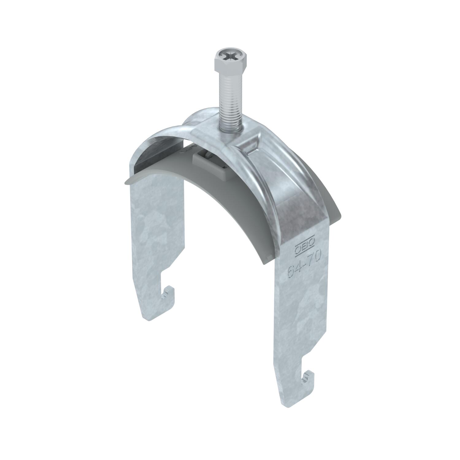 Clamping range D, max. 70 mm Clamping range D, min. 64 mm CO2 Footprint (GWP) Cradle-to-Gate 0,3275 kg CO2e / 1 Piece Dimension 64-70mm Dimension A 25 mm Dimension B 79 mm Dimension C 40 mm Dimension G (mm) M8 Dimension H 101 mm Dimension L 45 mm Dimension t 2,5 mm For pipe diameter, max. 70 mm For pipe diameter, min. 64 mm for rail with slot width (with interval), max. 22 mm for rail with slot width (with interval), min. 18 mm Halogen-free yes Height 101 mm Length 25 mm Length of external dimensions 40 mm Material Steel Material addition Steel Material of trough Plastic Material quality of trough Polypropylene Max. Tightening torque 5 Nm Mounting type Profile rail Number of cables/pipes 1 Plate thickness 2,5 mm Slot width 10 mm Surface Hot-dip galvanised Surface addition hot galvanised Thread M8 Width 79 mm With counter-trough no With plastic trough yes - All types