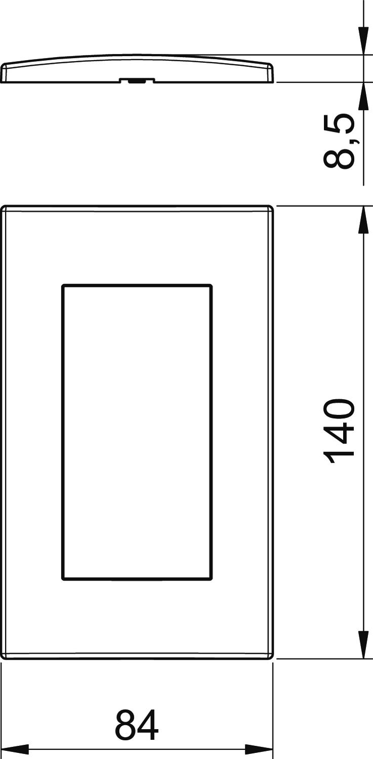 Antibacterial treatment no Anzahl der Einheiten vertikal 2 CO2 Footprint (GWP) Cradle-to-Gate 0,1577 kg CO2e / 1 Piece Colour Pure white; RAL 9010 Depth 8,5 mm Dimension 84x140mm Einbaubreite 90 mm Fastening type Clamp fastening Halogen-free yes Height 84 mm Hinged cover no Installation height 45 mm Material Polycarbonate Mounting direction Horizontal and vertical Number of units 2 Number of units, horizontal 2 Protection rating Other Suitable for built-in installations yes Suitable for device installation ducts yes Suitable for flush-mounted installations no Suitable for underfloor duct socket no Surface version Matt Text field/inscription field no Transparent no Width 140 mm With mounting frame no - All types
