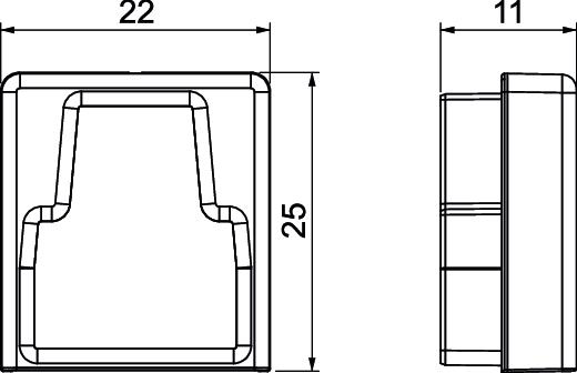 CO2 Footprint (GWP) Cradle-to-Gate 0,0119 kg CO2e / 1 Piece Colour Graphite black; RAL 9011 Connector version Integrated connector Dimension 20x20mm Fastening type Lockable Halogen-free yes Height 25 mm Length 11 mm Maintain electrical functions no Material Thermoplastic elastomer Protection rating IP30 Protection rating IK code IK10 Protective film no Version for Left/right Width 22 mm - All types