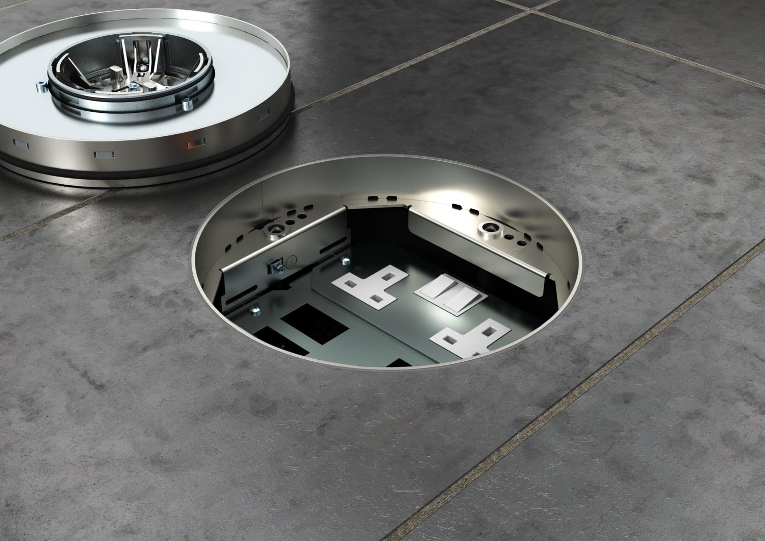 Approvals VDE Cable outlet version Lowerable tube body CO2 Footprint (GWP) Cradle-to-Gate 12,3599 kg CO2e / 1 Piece Decouplable no Device support to accept mounting boxes yes Dimension Ø215mm Floor care Wet Floor covering thickness 20 mm Floor height, max. 155 mm Floor height, min. 110 mm Heavy-duty version no Height-adjustment range, max. 155 mm Height-adjustment range, min. 110 mm Installation depth 110 mm Installation diameter 215 Installation system type UT3 Length 214 mm Material Stainless steel 1.4301 Nominal size for device installation units R4 Number of cable outlets 1 Number of installable devices 6 Number of mounting boxes 2 Protection rating (IP) when unused IP44 Protection rating (IP) when used IP20 Protection rating IK code IK10 Suitable for cavity floor installation yes Suitable for raised floor installation yes Version for Round Vertical load, large area to 5,000 N Vertical load, small area to 3,000 N Width 214 mm - All types