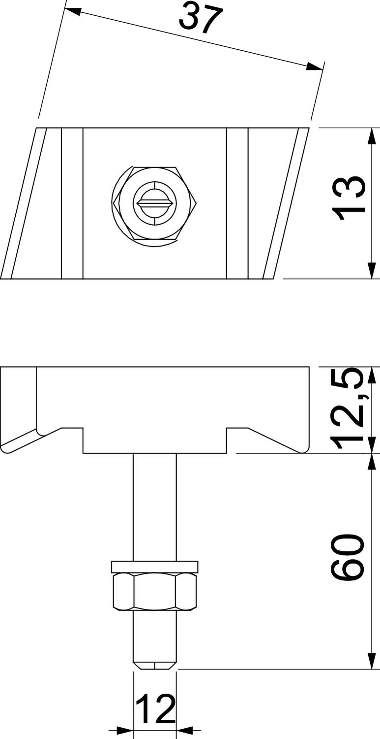 CO2 Footprint (GWP) Cradle-to-Gate 0,2981 kg CO2e / 1 Piece Dimension M12x60mm Height 10 mm Length 43,3 mm Material Steel Suitable for mounting rail yes Surface Zinc slat Thread M12x60mm Thread metric 12 Width 13 mm - All types
