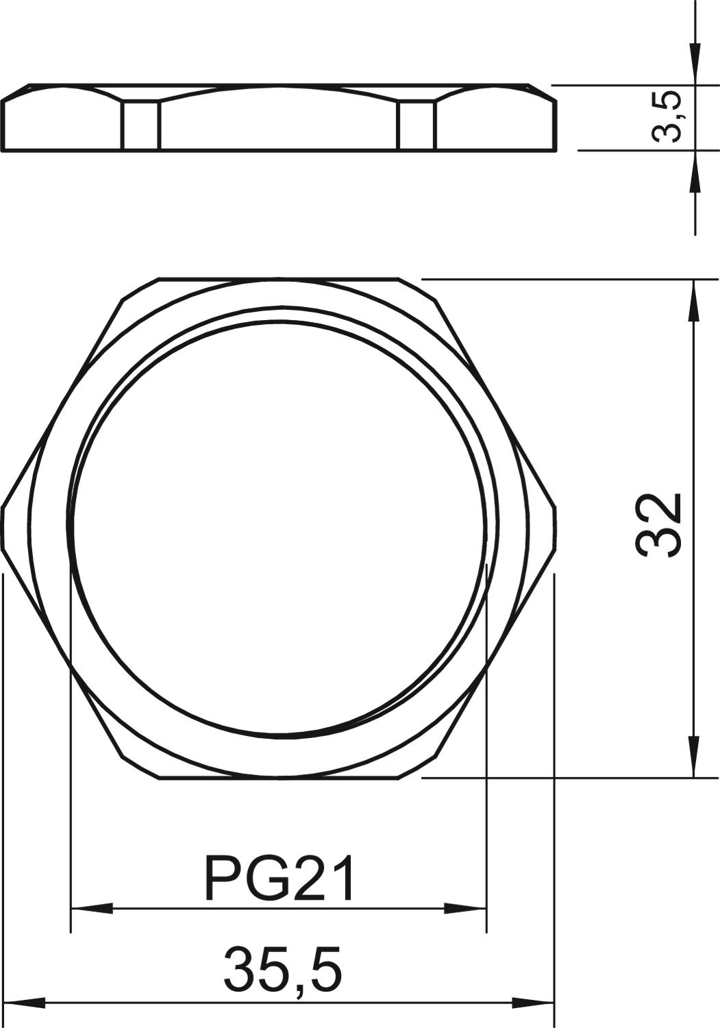 CO2 Footprint (GWP) Cradle-to-Gate 0,0186 kg CO2e / 1 Piece Dimension PG21 Dimension E 35,5 mm Dimension L 3,5 mm Fibre-glass reinforced no Halogen-free no Impact-resistant no Material Brass Nominal thread size metric/PG 21 Surface Nickel-plated Thread Pg 21 Thread type PG WAF 32 - All types