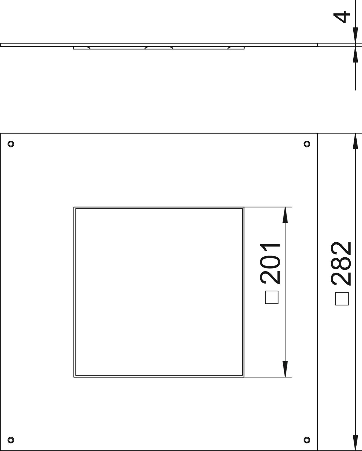CO2 Footprint (GWP) Cradle-to-Gate 5,6096 kg CO2e / 1 Piece Dimension 282x282x4 Dimension A 282 mm Dimension a 201 mm Floor care Dry Heavy-duty version no Installation opening for on-floor tank no Length 282 mm Material Steel Material thickness 4 mm Mounting opening Square Mounting opening cover no Nominal size 250 mm Nominal size for device installation units 4 Seal installation option no Suitable for screed-covered underfloor ducts yes Suitable for screed-flush closed underfloor ducts no Surface Strip galvanized Trunking width, max. 250 mm Trunking width, min. 190 mm Width 282 mm - All types