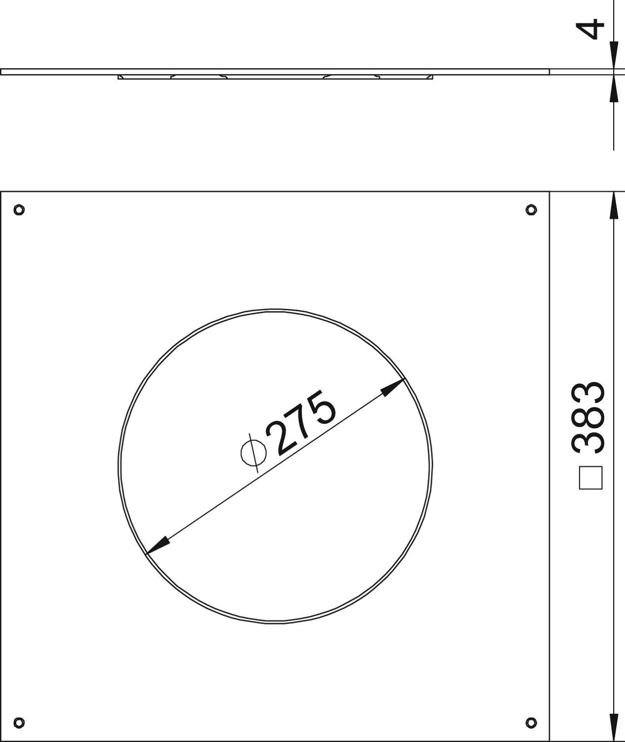 CO2 Footprint (GWP) Cradle-to-Gate 11,2021 kg CO2e / 1 Piece Dimension 383x383x4 Dimension A 383 mm Dimension d Ø 275 mm Floor care Dry Heavy-duty version no Installation opening for on-floor tank no Length 383 mm Material Steel Material thickness 4 mm Mounting opening Round Mounting opening cover no Nominal size 350 mm Nominal size for device installation units R7 Seal installation option no Suitable for screed-covered underfloor ducts yes Suitable for screed-flush closed underfloor ducts no Surface Strip galvanized Trunking width, max. 350 mm Trunking width, min. 190 mm Width 383 mm - All types
