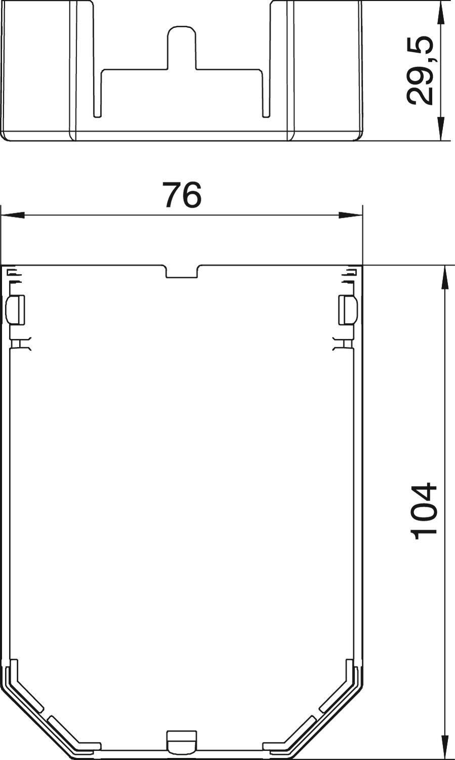 Product descriptionFor standardised, bottom side closure of mounting supports for Modul 45 and FLF device supports. L = 104 mm.