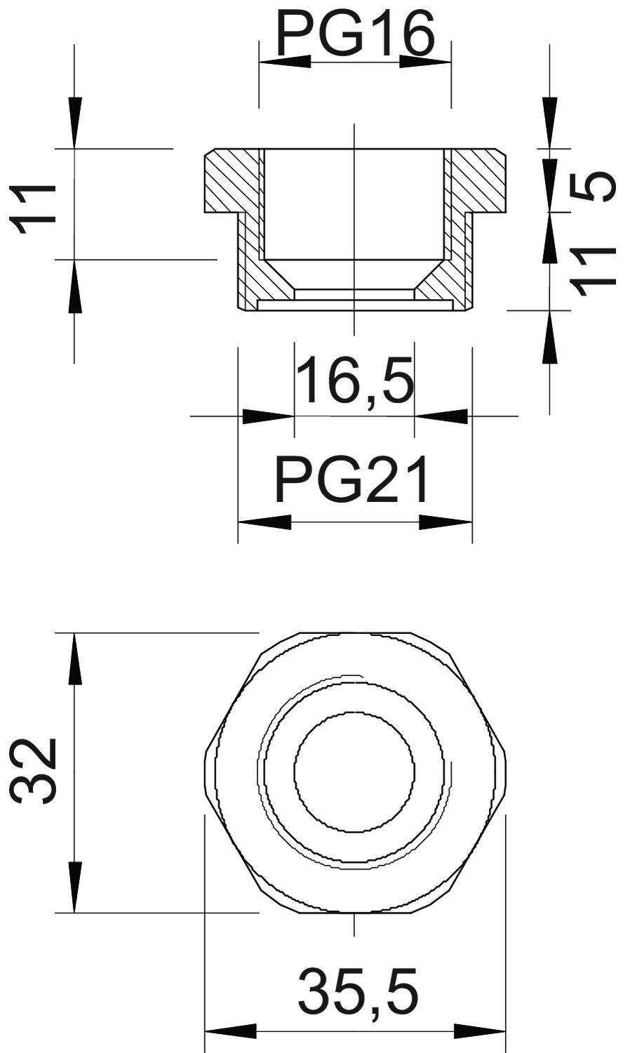CO2 Footprint (GWP) Cradle-to-Gate 0,0288 kg CO2e / 1 Piece Colour Light grey; RAL 7035 Dimension PG21-PG16 Dimension D 16,5 mm Dimension E 35,5 mm Dimension L1 11 mm Dimension L2 5 mm Dimension L3 11,5 mm explosion-proof no Halogen-free yes Material Polyamide Nickel-plated no Thread dimension, PG, external 21 Thread dimension, PG, internal 16 Thread length 11 mm Thread type: External thread PG Thread type: Internal thread PG WAF 32 - All types