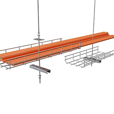 Cable support systems and connection and fastening systems for industry and construction project infrastructure