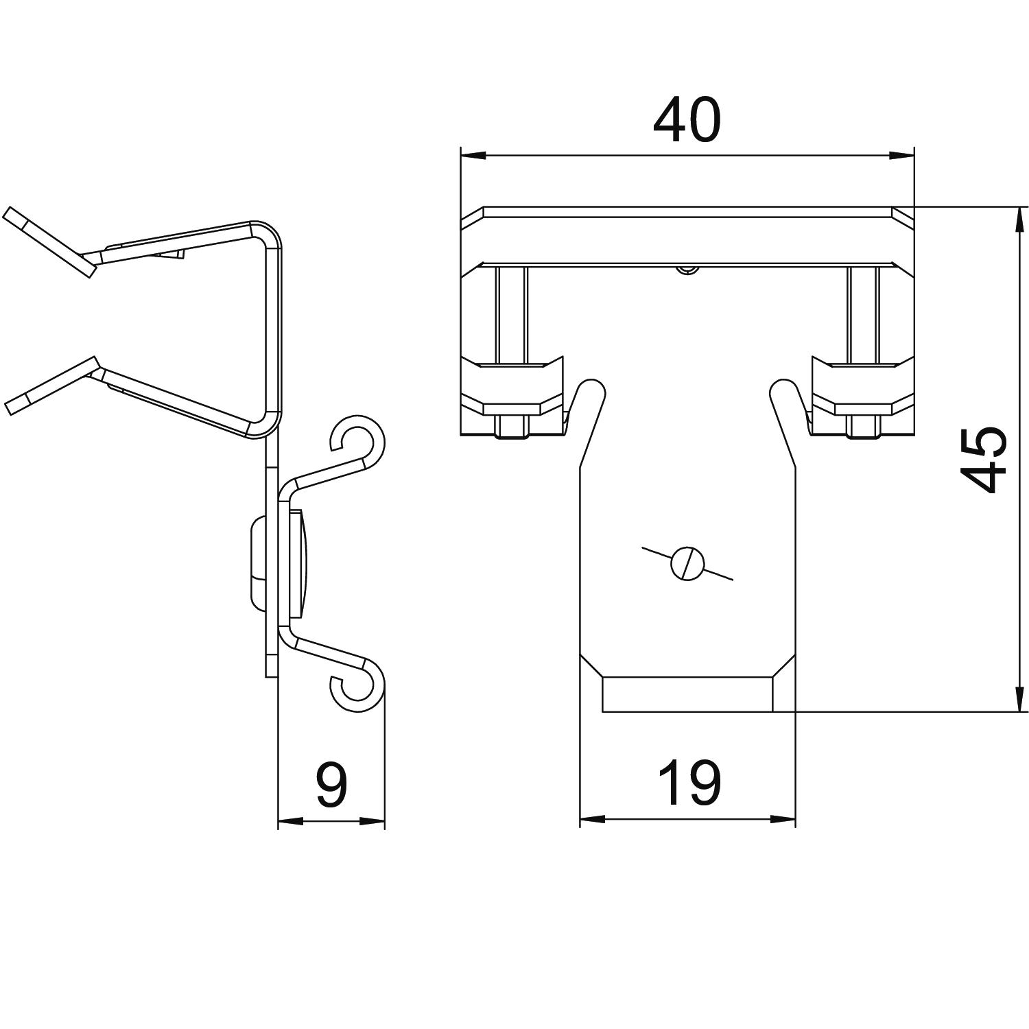Breaking load 0,22 kN Colour zinc Connection type/component Pipe/cable Dimension 10-15mm Dimension L 45 mm Dimension W 40 mm Fastening type Clamp Flange thickness F max. 15 mm Flange thickness F min. 10 mm Height 33 mm Hinge, adjustable no Hinged no Length 45 mm Material Steel Surface Zinc slat Width 40 mm - All types
