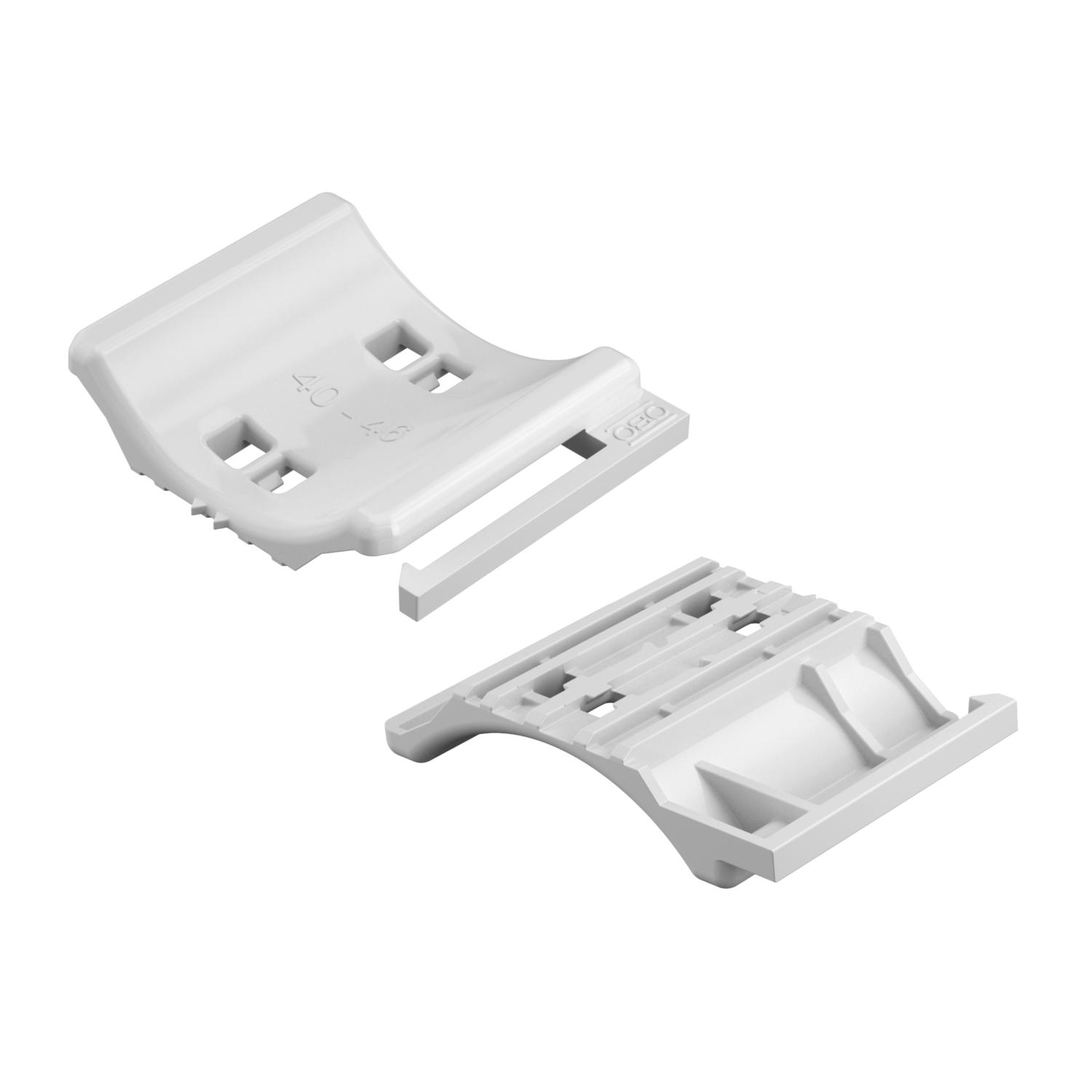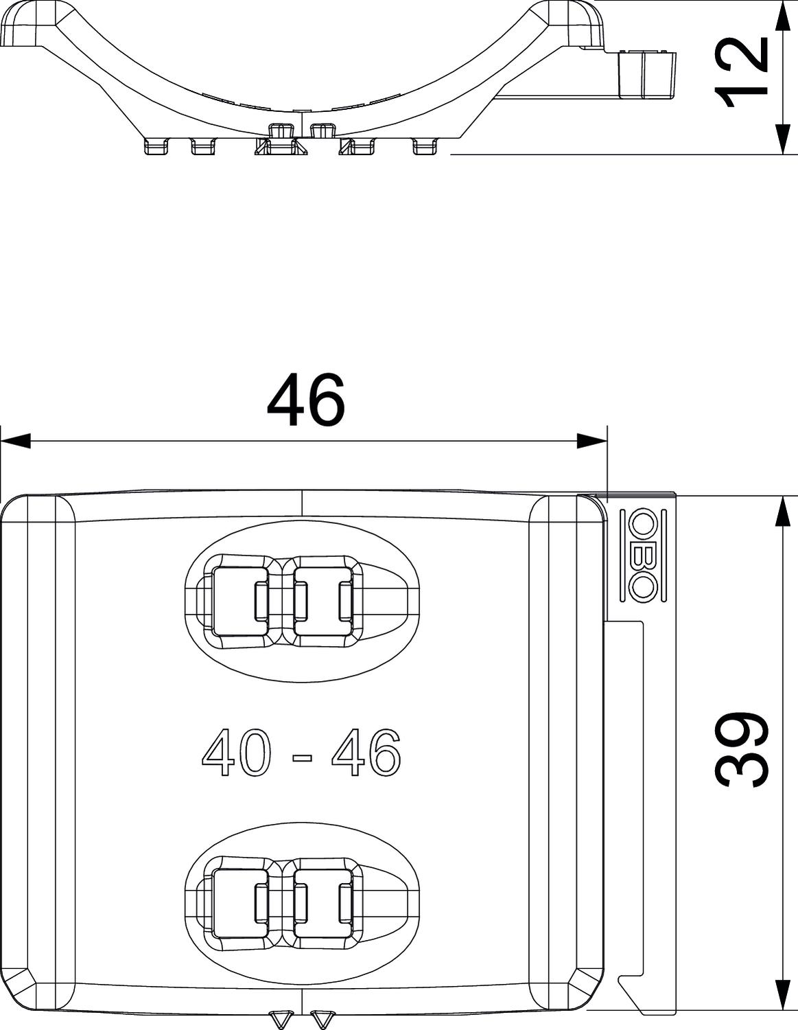 Clamping range D, max. 46 mm Clamping range D, min. 40 mm CO2 Footprint (GWP) Cradle-to-Gate 0,0229 kg CO2e / 1 Piece Colour Light grey; RAL 7035 Counter-trough/clip version Counter sleeve Dimension 40-46mm Dimension B 51,5 mm Dimension H 11,8 mm Dimension L 40 mm Material Polypropylene Suitable for max. cable diameter 46 mm - All types