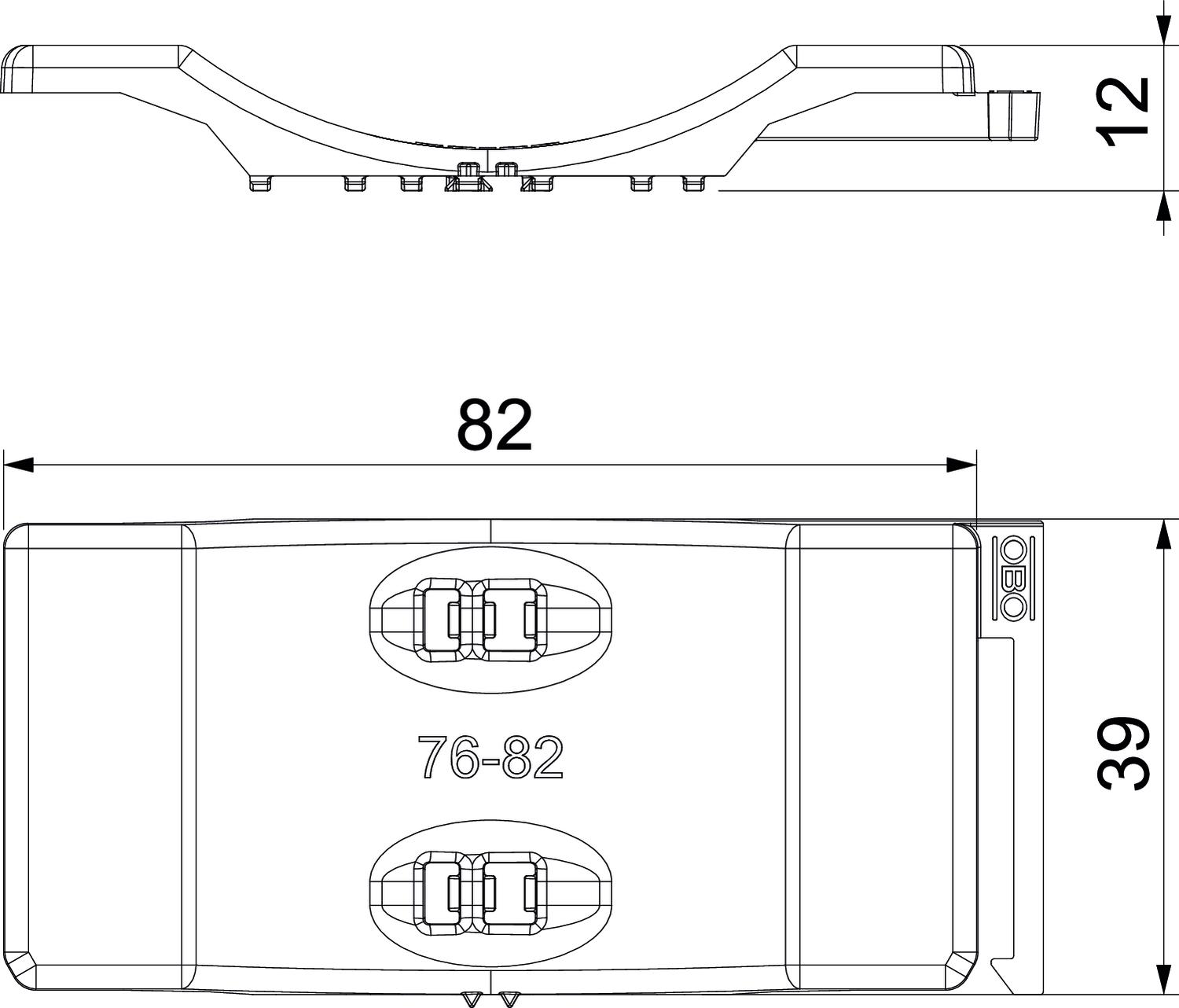 Clamping range D, max. 82 mm Clamping range D, min. 76 mm CO2 Footprint (GWP) Cradle-to-Gate 0,0433 kg CO2e / 1 Piece Colour Light grey; RAL 7035 Counter-trough/clip version Counter sleeve Dimension 76-82mm Dimension B 87,5 mm Dimension H 12,3 mm Dimension L 40 mm Material Polypropylene Suitable for max. cable diameter 82 mm - All types